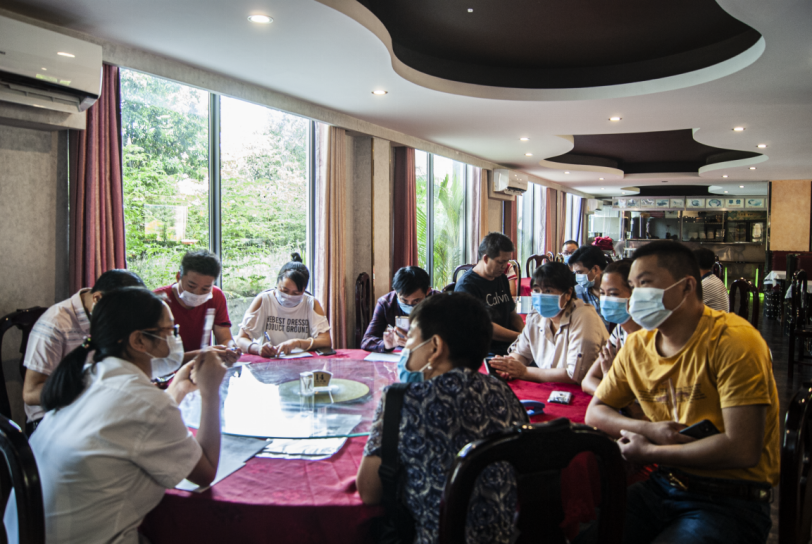 隨后,現場應聘人員從個人能力、求職原因、家庭情況等方面進行分組面試。應聘者中大多數都是在柬工作中籍人員,是難得的會柬語、對當地情況十分了解的技術工人。受疫情影響,許多工人所在的工廠停產關閉,對他們的生活造成了嚴重的影響,因此他們迫切需要一份穩定的工作。
